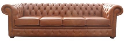 Tan Leather Chesterfield 4 Seater Settee Sofa