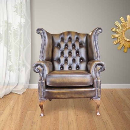 Antique Gold Leather Chesterfield Wingback Chair
